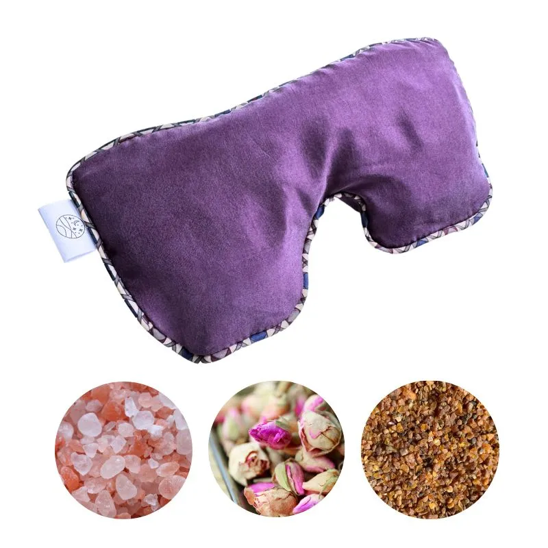 Wypełniona solą kłodawską, bursztynem bałtyckim i suszonymi płatkami róży, opaska działa przeciwbólowo, odprężająco i aromaterapeutycznie. Jedwabna tkanina jest przyjazna dla skóry, delikatnie chłodzi i nie podrażnia okolic oczu.